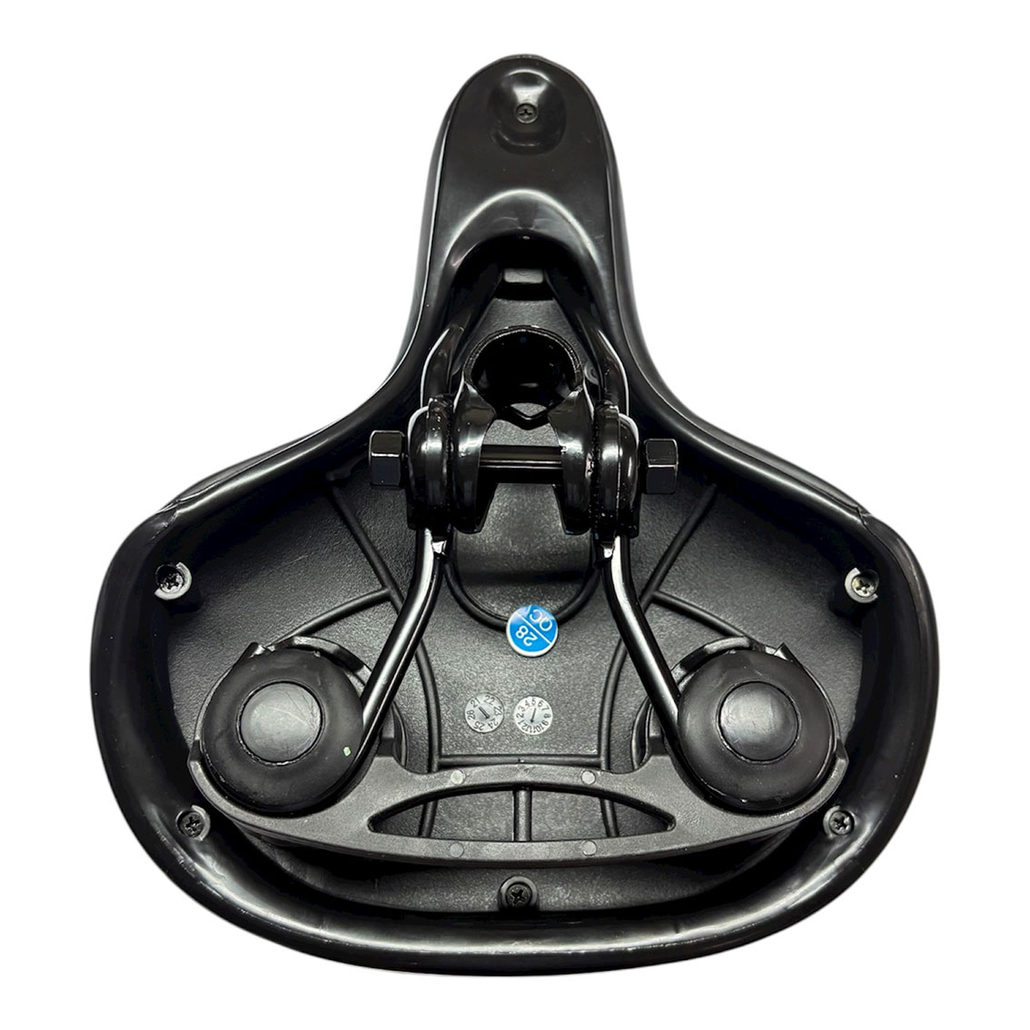 Asiento playero negro con elastómeros de goma color negro.